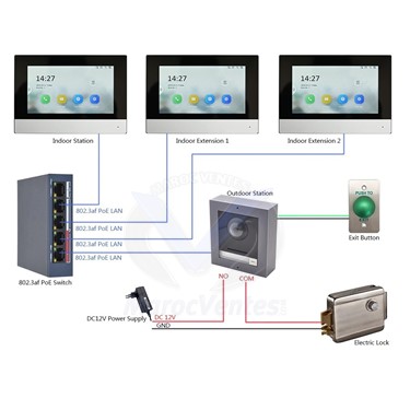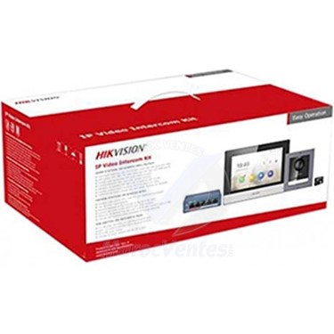 Kit portier vidéo IP full HD en saillie avec écran tactile pour maison et entrepriseCe portier vidéo IP est la solution idéale et très simple pour s'équiper ou renouveler son installation existante. Il se connecte à internet et vous permet de voir en temps réel qui sonne à la porte depuis votre smartphone de n'importe où dans le monde et d'ouvrir à distance.Le kit interphone vidéo DS-KIS602 est compatible avec les NVR Hikvision ainsi qu'avec l'application Hik-Connect. Retrouvez tous vos produits Hikvision (NVR, caméra IP et interphone) au travers d'une seule et même application.Ce portier permet également d'intégrer une carte SD jusqu'à 32Go pour conserver les photos et les conversations des personnes ayant sonné à votre porte.Que contient la boîte ?1 x platine de rue (portier vidéo couleur) au design épuré et élégant DS-KD8003-IME11 x boîtier de montage en saillie DS-KD-ACW1 (la caméra est déjà intégrée dans son support)1 x écran de contrôle tactile avec support de montage DS-KH6320-WTE11 x switch 5 ports dont 4 ports PoE pour alimenter la caméra DS-3E0105P-E/M1 x carte SD 16Go1 x alimentation 12VVisserieManuel d'installationLes points forts du kit interphone vidéo DS-KIS602Caméra full HD angle de vision extra large (180°)Caméra couleurVision de nuitHaut-parleur et microphone intégré2 contacts secs pour ouvrir deux portailsOuverture de la gâche via l'écran de contrôle tactile ou le smartphone avec une serrure électroniqueVisualisation à distance sur smartphone ou tablette via l'application Hik-ConnectEnregistrement des images des visiteursIndice de protection IP65Stockage sur carte SD jusqu'à 32GoCompatible NVR Hikvision - Plus d'images (3)