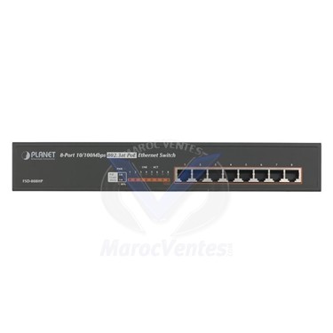Switch de bureau 8 ports 10 / 100Mbps 802.3at PoE 140W