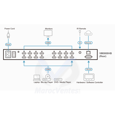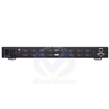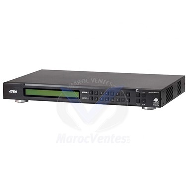 Description du ProduitLe VM0808HB d'ATEN est une gamme de commutateurs matriciels HDMI True 4K qui offre un moyen facile et abordable pour router une des 8 sources vidéo HDMI vers l'un des 8 affichages HDMI. Avec ses résolutions vidéo supérieures jusqu'à 4096 x 2160 à 60 Hz (4:4:4), le VM0808HB offre un routage de signaux robuste et une commutation vidéo numérique ultrarapide, ce qui le rend idéal pour les applications nécessitant le routage des signaux numériques True 4K, comme dans les lieux d'événements, les salles de classe numériques, les auditoriums, les grands magasins, et plus.La conception intuitive de l'interface utilisateur graphique du VM0808HB permet aux utilisateurs de configurer de manière flexible n'importe quelle entrée aux connexions de sortie, éliminant ainsi le besoin de changements fréquents de configuration physique. En plus de l'interface utilisateur graphique Web intégrée, le VM0808HB peut être utilisé via les boutons-poussoirs du panneau avant, latélécommande IR, le contrôle RS-232 et Telnet via des connexions Ethernet, offrant aux utilisateurs la commodité ultime tout en gardant le système disponible avec l'efficacité de commutation vidéo à tout moment.Connecte une des 8 sources HDMI à un des 8 affichages HDMI