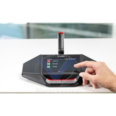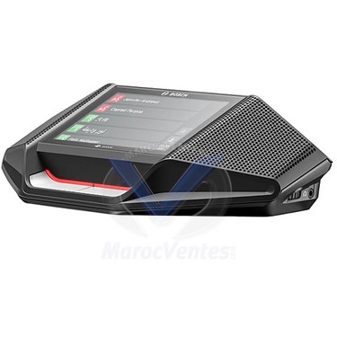 Ce poste de discussion Bosch Dicentis embarque un lecteur NFC afin de reconnaître facilement et rapidement les participants à la réunion. Doté d'un large écran capacitif 4,3 pouces, il dispose d'une option permettant d'afficher le logo de votre choix.