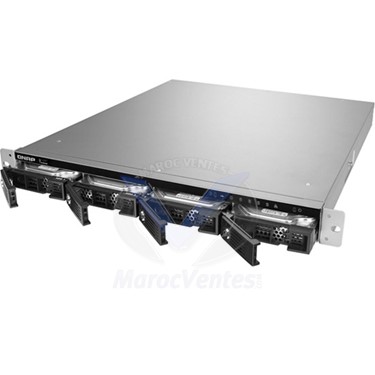 Processeur Dual-core Intel® Celeron 2.41GHz (jusqu'à 2.58GHz)Mémoire: 1 Go de SDRAM DDR3L (1 x 1 Go)Machines à sous: 2 SODIMM (Max: 8 Go)NOTE: 1. Lors de l'installation de deux modules de mémoire, s'il vous plaît assurer qu'ils sont de la même taille et idéalement utiliser le même type de RAM pour les deux emplacements de mémoire.2. Pour les informations d'installation du module de RAM et modèles NAS compatibles, s'il vous plaît consulter le Guide d'installation QNAP module RAM.512 Mo de mémoire FlashDur interne 4 x 3.5 "ou 2.5" SATA 6Gb / s, disque dur SATA 3Gb / s ou SSDNOTE:1. Le système est livré sans disque dur.2. Liste de compatibilité DDPlateau du lecteur 4 plateaux remplaçables à chaud et verrouillablesInterface réseau 2 ports RJ45 Gigabit EthernetPorts 4 x USB 3.0 (à l'arrière)1 x USB 2.0 (avant)1 x HDMI1 x console (la maintenance du système)Indicateurs LED Statut, LAN, USB, disque dur 1, 2 HDD, HDD3, HDD4Boutons d'alimentation, USB One-Touch-Copy, réinitialiserAlarme avertissement système BuzzerFacteur de forme 1U, montable en rackDimensions 44 (H) x 439 (W) x 499 (P) mm1,73 (H) x 17,28 (W) x 19,65 (D) poucesPoids Poids net: 7,63 kg (16,82 lb)Poids brut: 11,60 kg (25,57 lb)Consommation électrique (W) en veille du disque dur: 21.03WEn fonctionnement: 38.01W(avec 4 x 2 To de disque dur installé)Température 0-40˚CHumidité 0 ~ 95% d'humidité relativeAlimentation Entrée: 100-240V AC, 50 / 60Hz; Sortie: 250WFan 2 x ventilateur de refroidissement silencieux (4 cm, 12V DC) - Plus d'images (3)