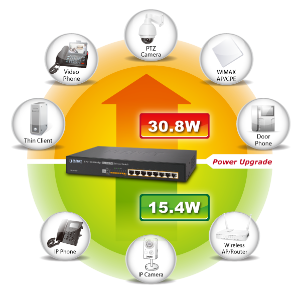 Planet FSD-808HP - Switch de bureau 8 ports 10 / 100Mbps 802.3at PoE 140W