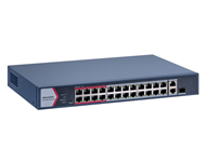 24 Port Fast Ethernet Smart POE Switch: 24 × 10/100M PoE ports, 1 × Gigabit combo,1 × Gigabit RJ45 port Total PoE Power Budget 230 W Support 802.1Q VLAN Support PoE watchdog to detect and restart the cameras that do not respond Support STP/RSTP Loop prevention Support cable detection to locate failure Up to 300 m Long Range PoE Transmission 6 kV Surge Protection