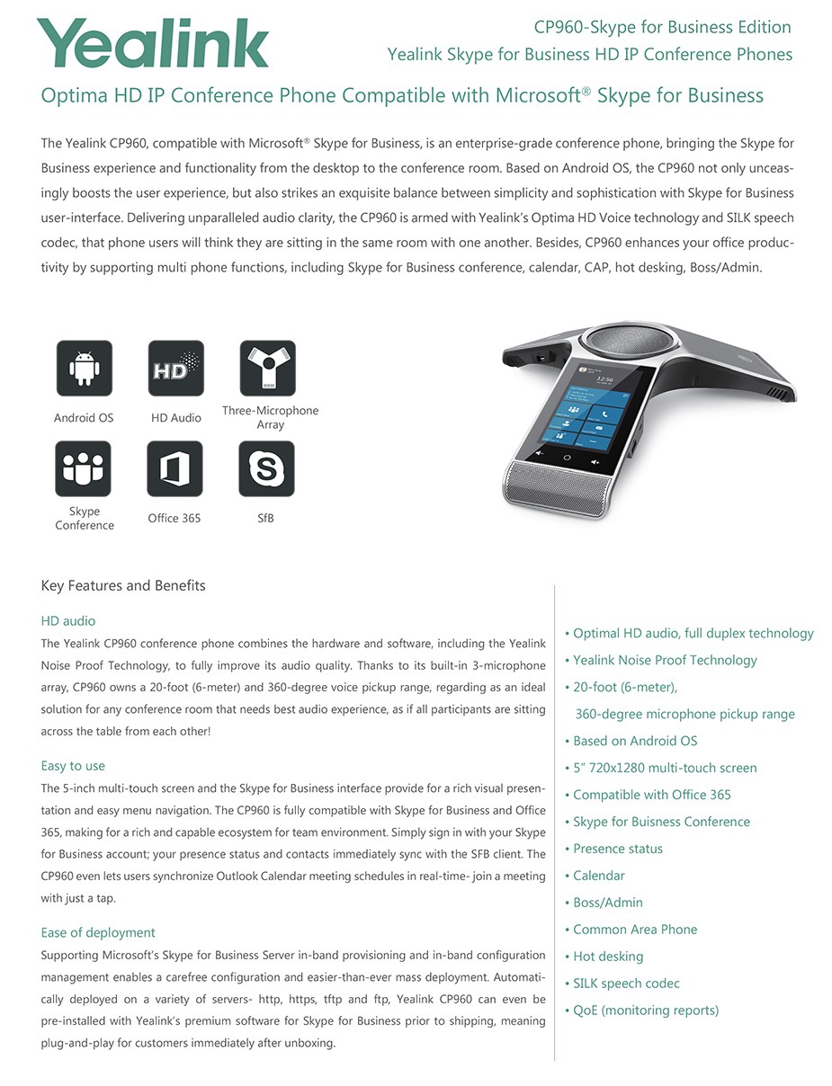 Yealink CP960 - Audioconférence IP pour conférence HD avec écran tactile 5''