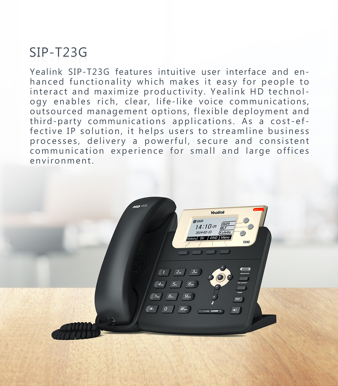 Le Yealink T23G est une solution IP très rentable qui aide les utilisateurs à optimiser les processus de communications sécurisés dans les environnements de petites et moyennes entreprises.